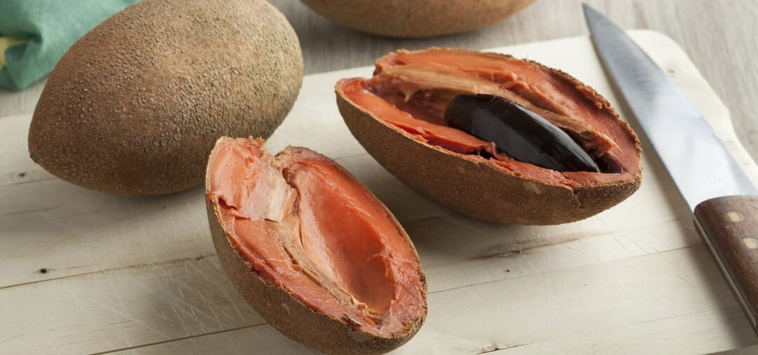 About the size of an extra-large avocado with rough, brown skin, mamey zapote looks unremarkable…that is, until you slice it open.